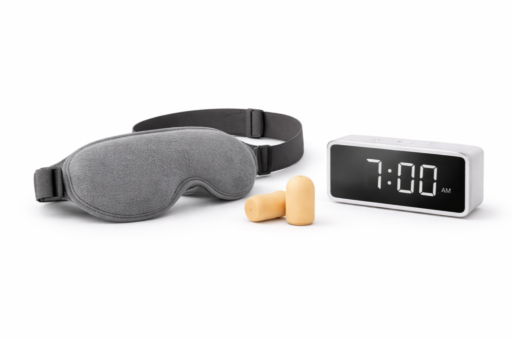 Eye masks, blackout curtains, and comfort upgrades.